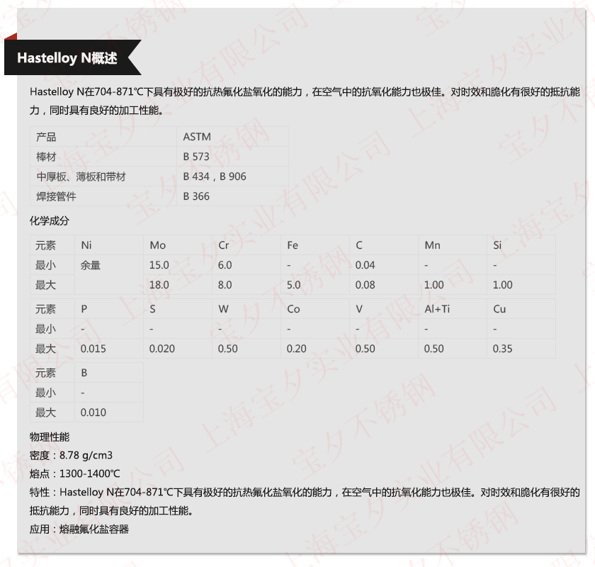 上海宝夕实业—Hastelloy N材质单,上海宝夕实业—Hastelloy N成分表,上海宝夕实业—Hastelloy N是什么材料