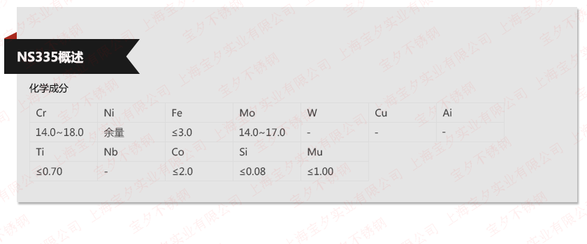 上海宝夕实业—NS335材质单,上海宝夕实业—NS335成分表,上海宝夕实业—NS335是什么材料
